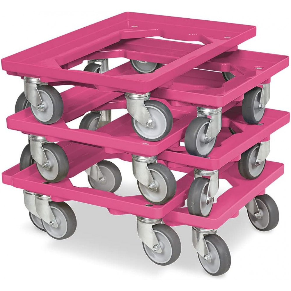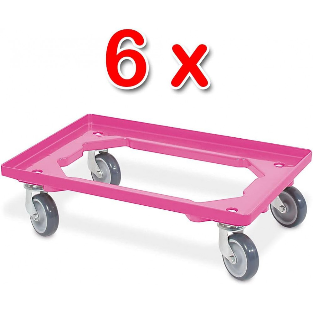 Lot de 6 trottinettes de transport pour conteneurs 600 x 400 mm, capacité de charge 250 kg, rose