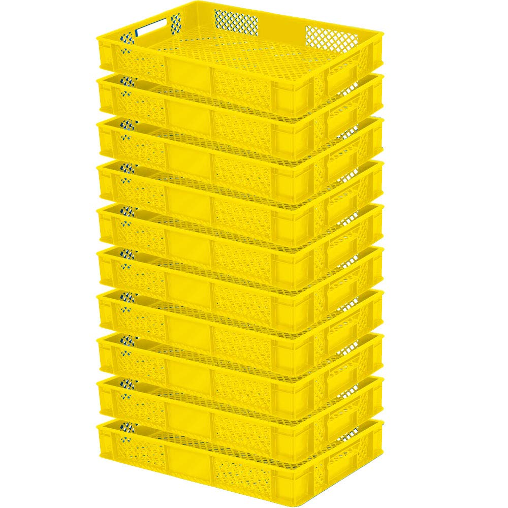 10x Bac gerbable normes Europe à parois et fonds ajourés - Lxlxh 600x400x90 mm, jaune